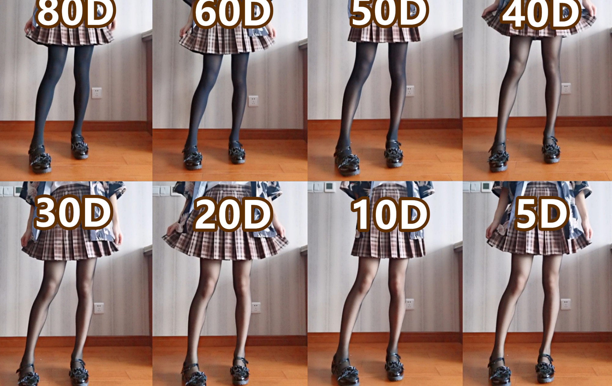 首先需要科普两个单位,D和g,D一般用在丝袜上,g一般用在光腿神器上,单位前的数字越小,袜子越薄。